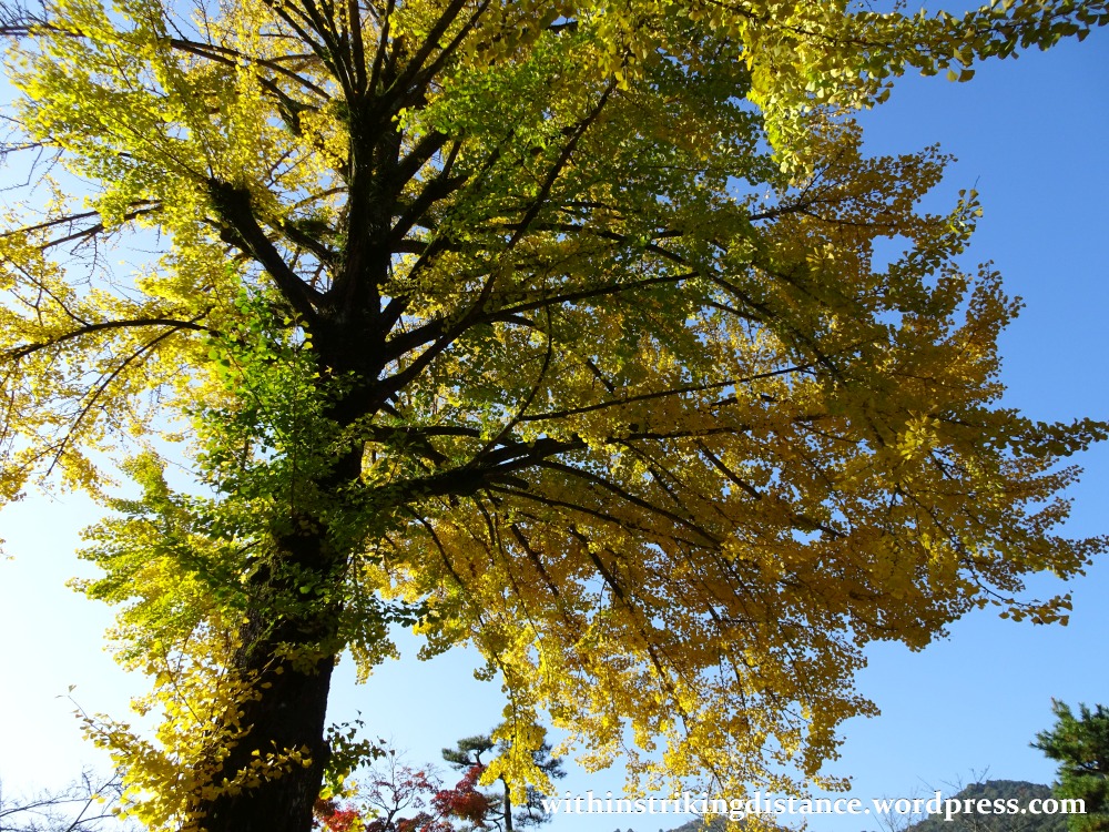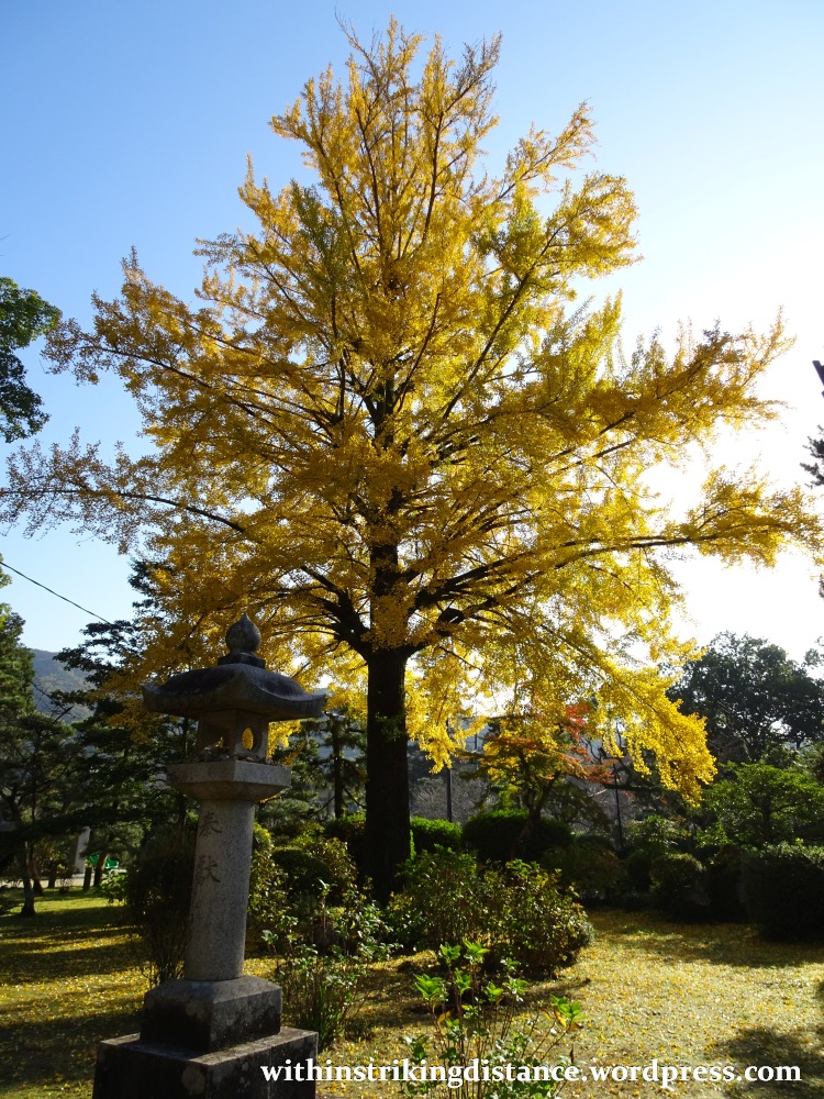 The seasonal splendours carried over into the tranquil grounds of Kikkō Shrine (吉香神社, Kikkō-jinja) in the northeastern corner of the park. There, I found a couple of ginkgo trees approaching their full autumn glory, with a great golden carpet of fallen leaves spread out upon the ground beneath them.