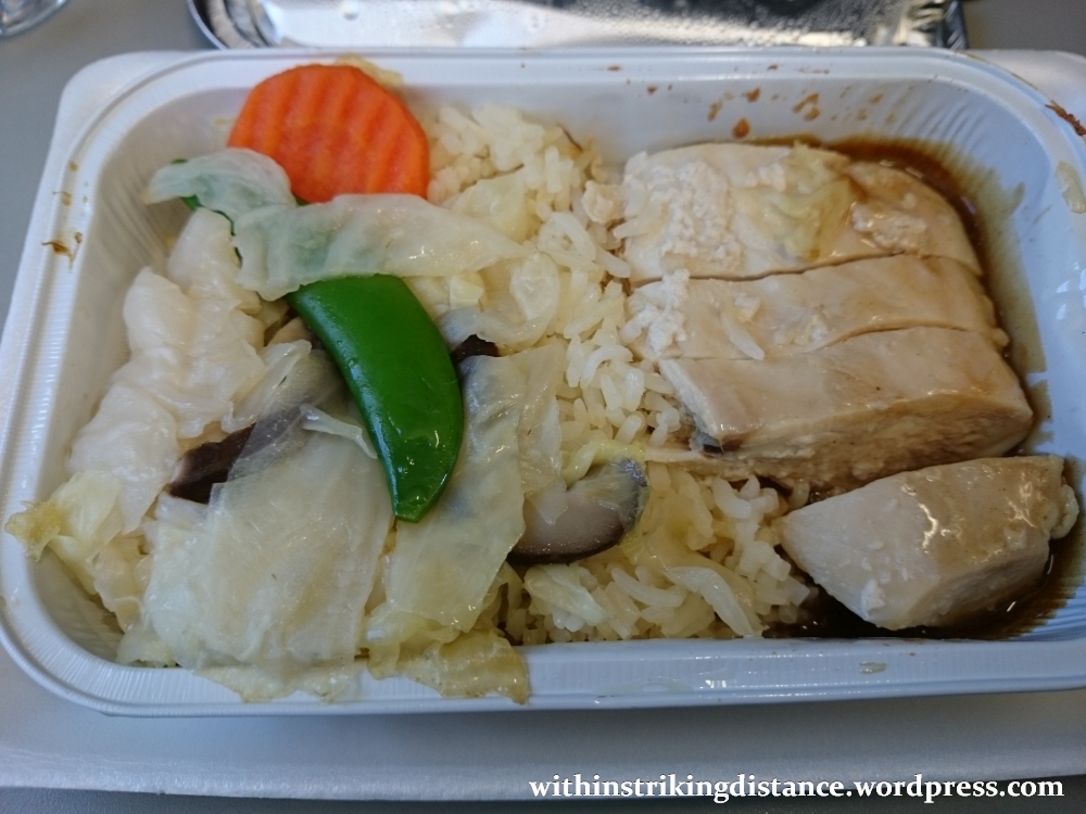For this leg, my choice was the airline’s signature dish: “Singapore chicken rice”. That’s how it was labelled on the menu, anyway. Some of us are probably more familiar with the dish under the common name “Hainanese chicken rice”.