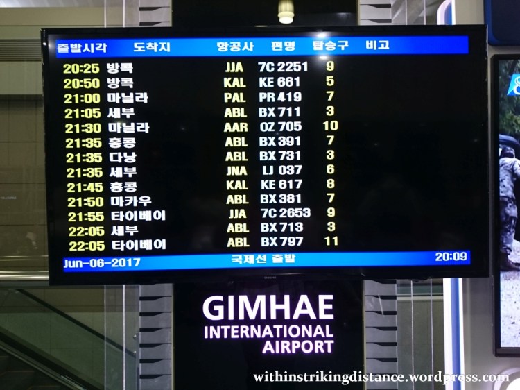 The limousine bus I took from central Busan stopped at the international terminal first, then proceeded to the domestic terminal nearby. Even if one gets off at the wrong terminal, the two are within walking distance of each other so transferring shouldn’t be too much of a challenge.