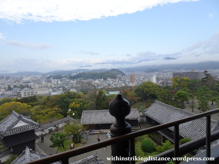 One can of course climb to the uppermost floor of the tenshu – there to enjoy splendid views of the surrounding city and the cloud-wreathed mountains beyond.