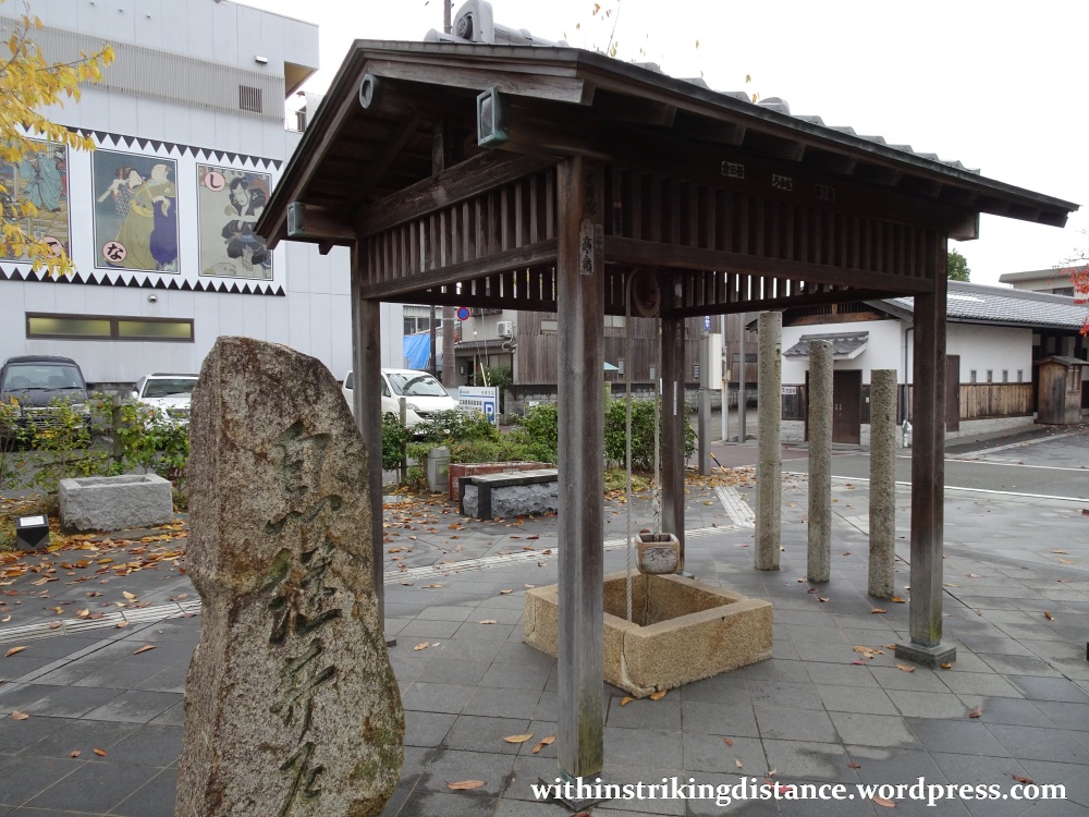 On my way back to the station, I encountered a tangible relic of that long, hard journey to bear the ill tidings of Asano’s crime and punishment back to his home territory. Worn out from their haste, the two clan retainers who had just arrived from Edo paused at this very well for a drink before proceeding to Akō Castle.