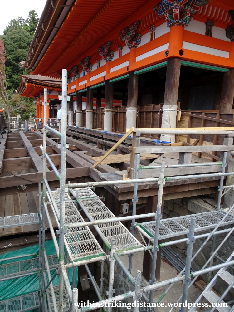Soon, I found myself looking straight up at the floor of the Hondō’s famous “stage”, borne aloft by massive wooden pillars and beams.
