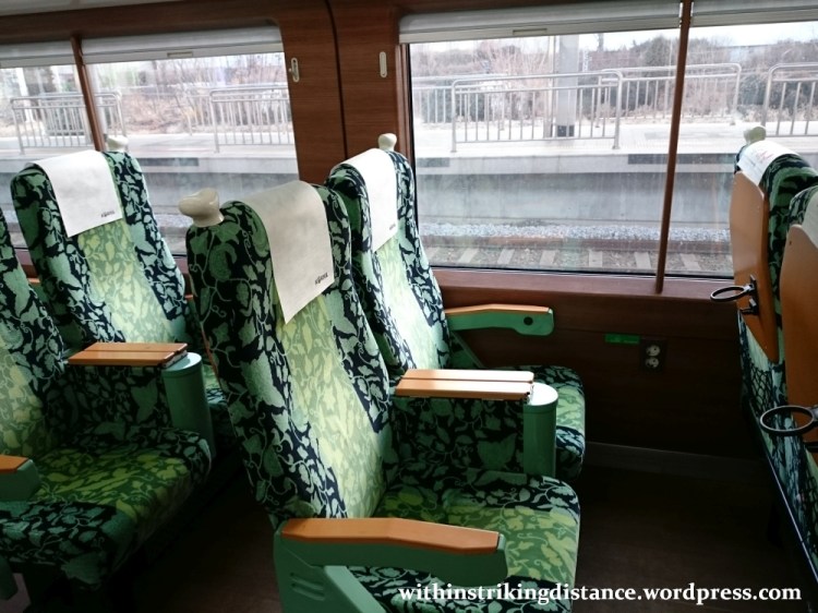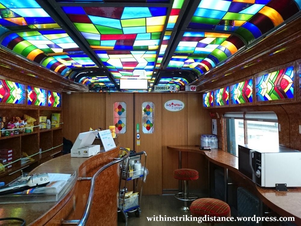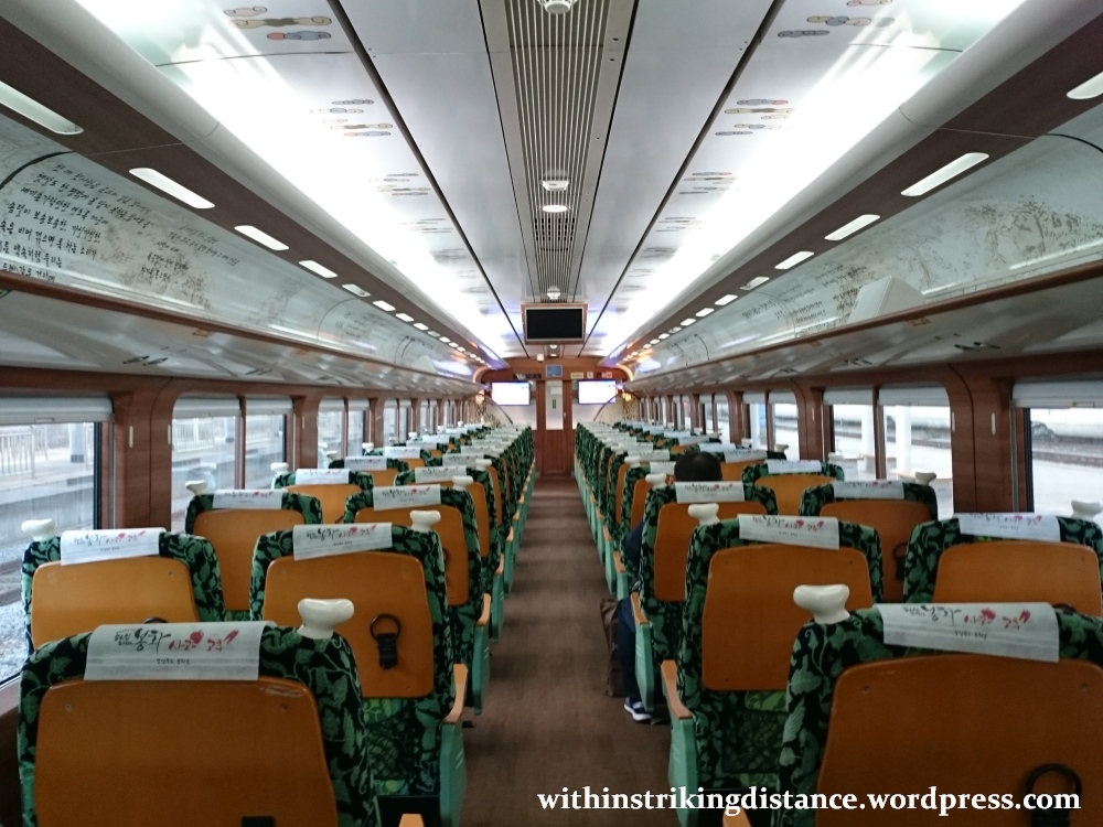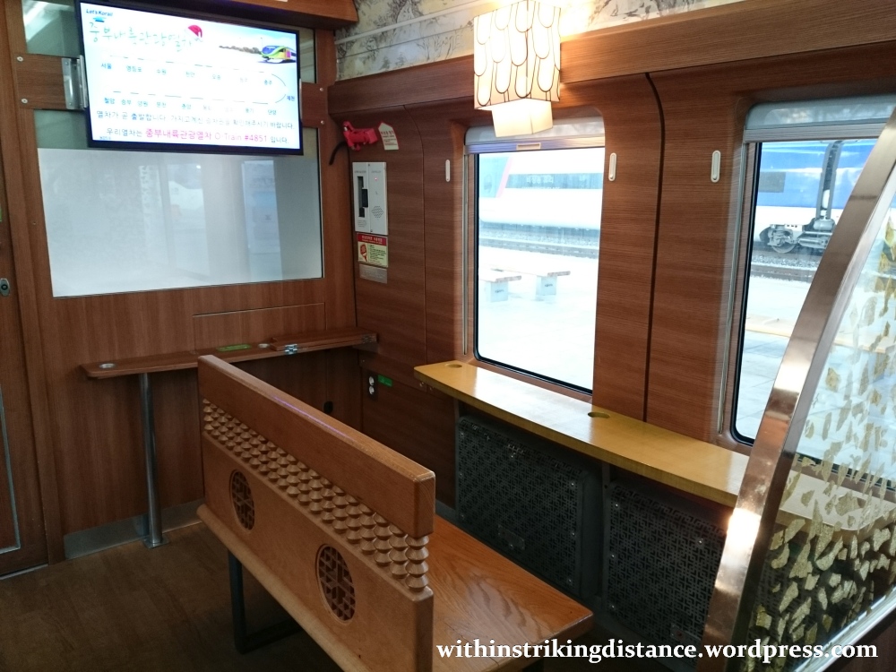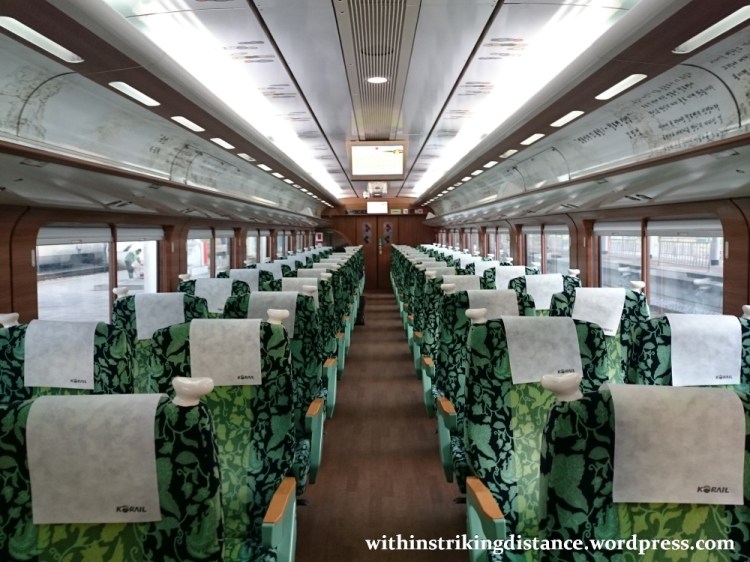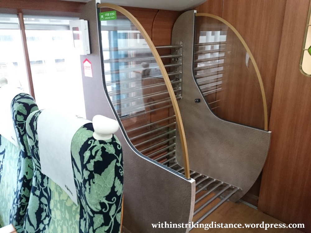 I didn’t do much exploring beyond this point, but from what I’ve seen on the KORAIL website, the rest of car #2 had a mix of seats that included pairs similar to those in #4, plus solo window-facing armchairs. Car #1 seemed pretty much identical to car #4, both in terms of seat type and interior decoration.