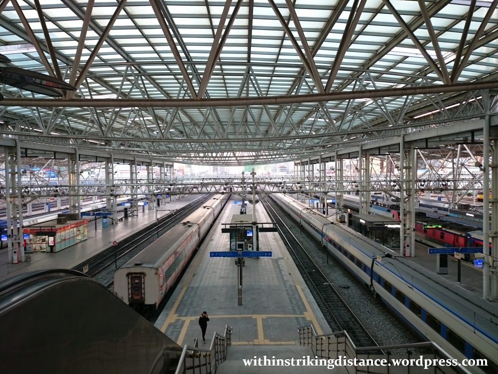 At this key transportation hub, it’s possible to do a bit of trainspotting even without leaving one’s assigned platform. Here, for example, we have a high-speed KTX-Sancheon preparing to depart for Pohang…