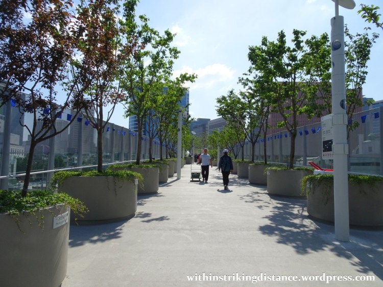 …how the former flyover – that grey ribbon of concrete running across the middle – links the area immediately west of Seoul Station to the districts just east of it, separated by the railway lines that pass through this major transportation hub. After more than 40 years of service, the road was permanently closed to cars in 2015, and over the next two years it was transformed into a pedestrian-friendly linear park. Rebranded as Seoullo 7017, the converted flyover officially opened to visitors on 20 May 2017 (which explains the “17” in the name).