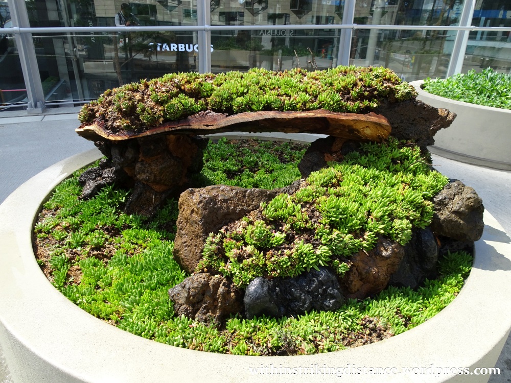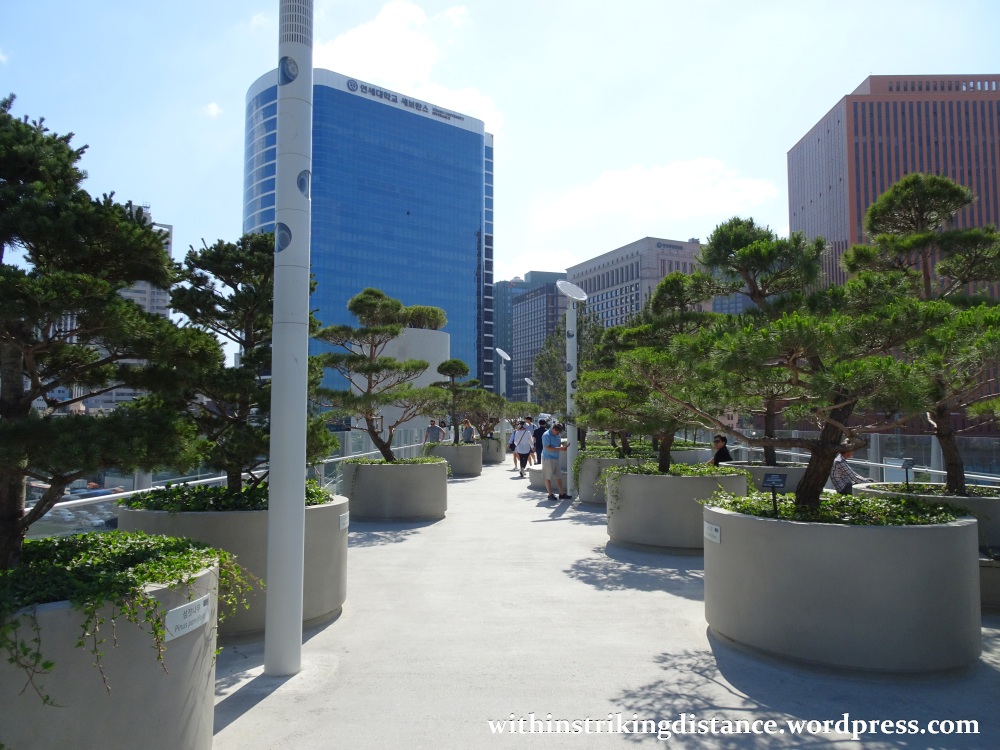 My first stop of the day was the newly opened Seoullo 7017 (서울로 7017), a former flyover turned pedestrian park. The elevated roadway, which opened to vehicles in 1970 (hence the “70” bit in the name), was originally designed to carry two lanes of traffic over the wide expanse of railway tracks leading out of nearby Seoul Station.