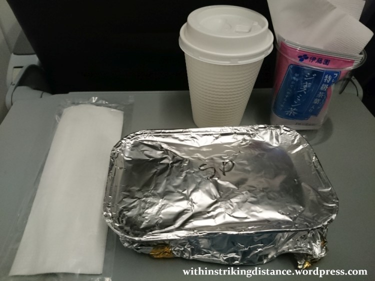 The meal was accompanied with a hot beverage of one’s choice. I didn’t want to deprive myself of what little sleep I could manage during the relatively short flight, so I skipped my beloved coffee and went with the jasmine tea instead.