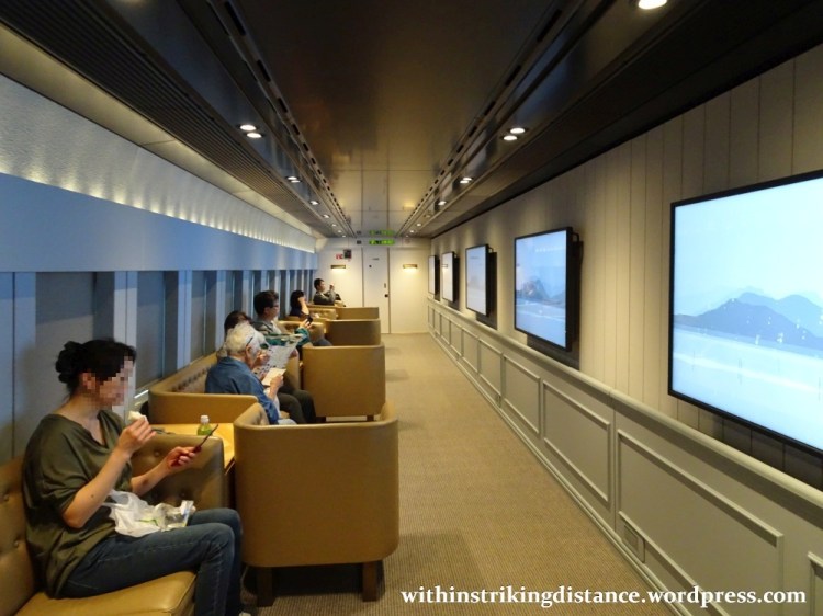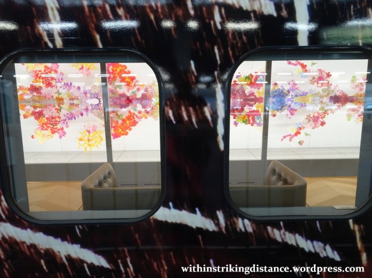 Wherever one chooses to sit, it’s worth keeping in mind that passengers are free to wander from car to car in order to appreciate the different artworks installed throughout the train. This is a high-speed art gallery, after all – where’s the fun in staring at the same exhibit for the duration of the ride? (That said, a good number of passengers did seem quite content to stay in place from beginning to end … but that’s their choice, not mine.)