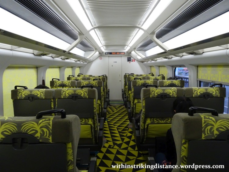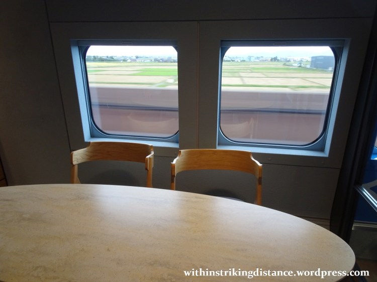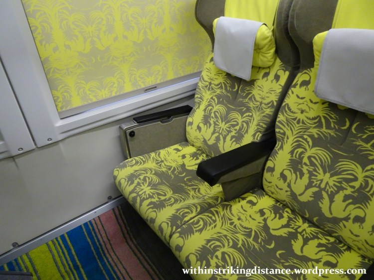 All seats from Car 12 to the end of the train are non-reserved, so anyone who’s paid the appropriate fare can take whichever unoccupied seat they like. And speaking of seats, note the forward-facing (or rear-facing, depending on the direction) armchairs wedded to two-person couches – certainly not the sort of thing one might expect to see on a typical shinkansen train.