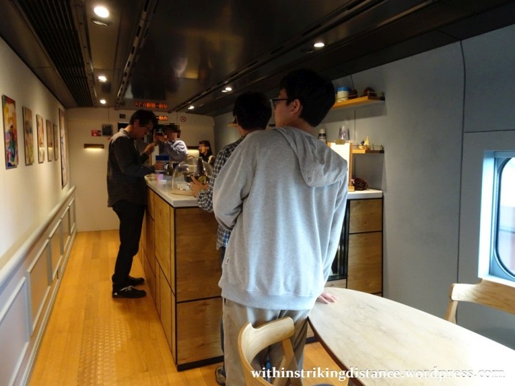 The rear section is the onboard café, decorated with art made by Kobuke Kentarō. The menu features an assortment of beverages and light snacks made with local ingredients from Niigata Prefecture.
