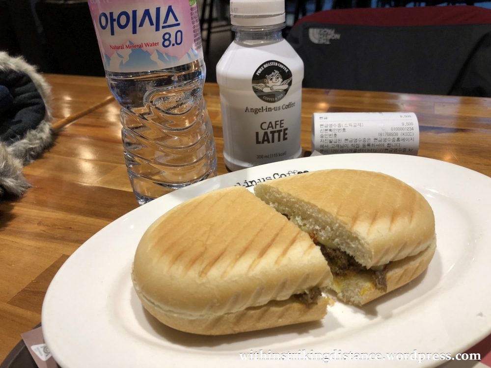 By half past seven or thereabouts, having already stashed all unwanted luggage at my hotel, I was enjoying the warmth of a downtown café and happily tucking into a bulgogi sandwich for breakfast.