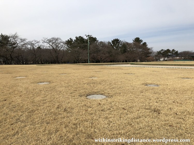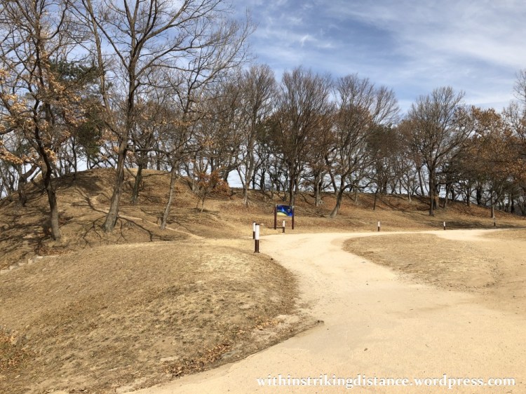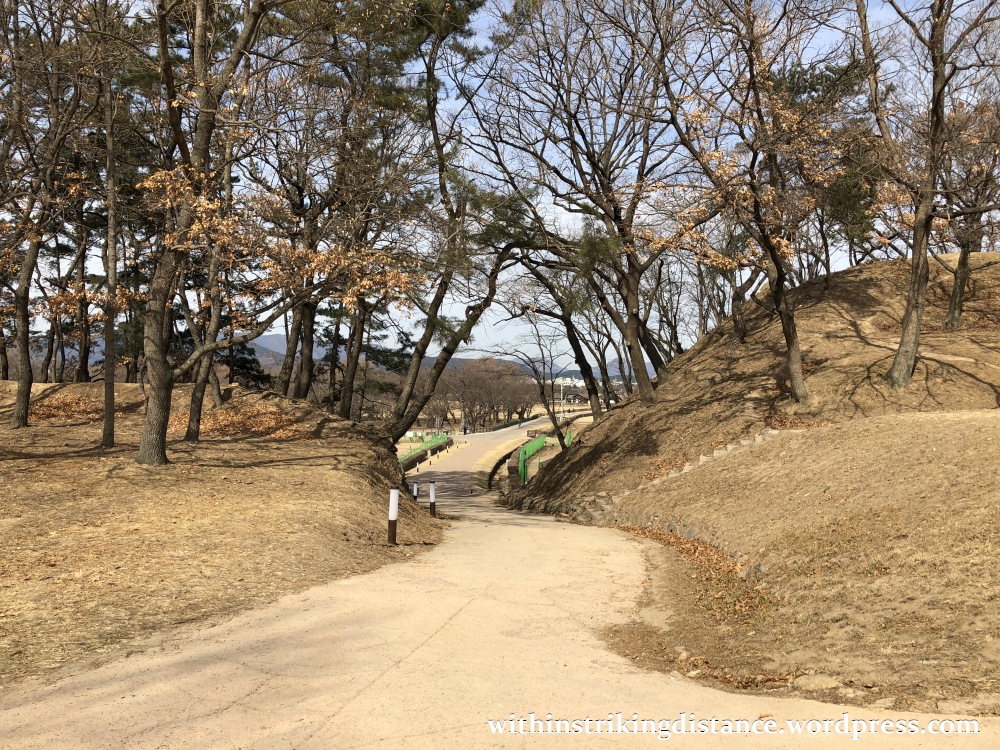 I continued south, towards the weathered remains of massive earthworks that once formed part of Wolseong (월성). This large, roughly crescent-shaped fortress was built in the first century AD to protect the Silla royal family’s central palace. The buildings themselves are long gone, but the eroded circuit of earthen ramparts surrounding the site is still readily discernible, appearing like a range of tree-covered hills.