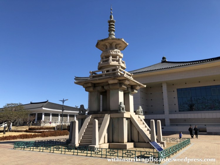 Out in the rear courtyard, I saw a replica of the Dabotap tower, erected in 1975 when the museum transferred to its present location. The 8th-century AD original stands in the world-famous Bulguksa temple compound southeast of central Gyeongju, which I considered visiting on this particular trip. In the end, I decided that there wasn’t enough time for the relatively out-of-the-way excursion there and back, but it’s yet another reason for me to return to Gyeongju one day.