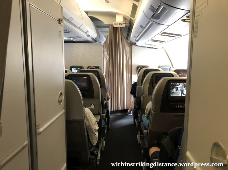 Row 39 was next to the forward bulkhead and offered plenty of extra legroom. In addition, we found that our seats were in a sort of mini-cabin just aft of Business Class and forward of the main Economy Class section – roughly where the Premium Economy area would be if the plane were so equipped. With just four rows, this section presented a veneer of privacy and exclusivity that the main cabin lacked, even though the seats themselves were no different from those further behind.