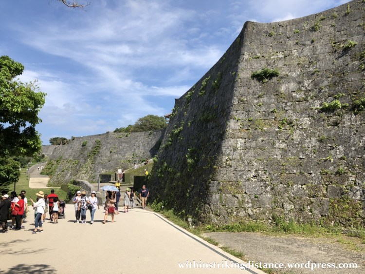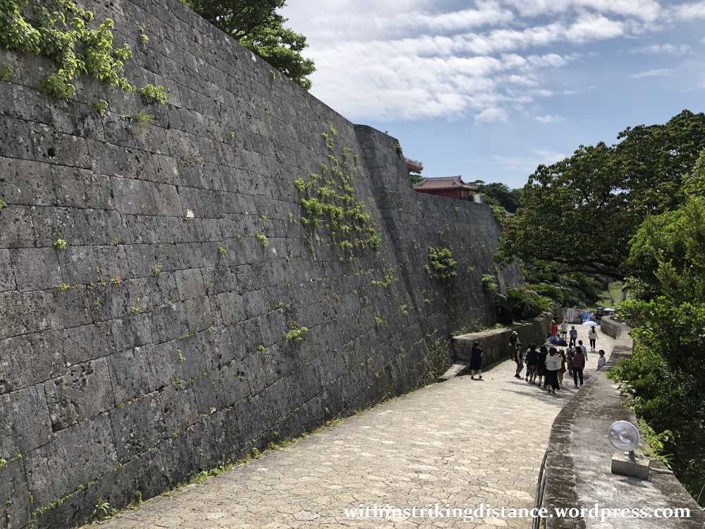 From here, the massive limestone retaining wall of Shuri Castle’s central enclosure reared up above us like a sheer cliff of solid grey rock.