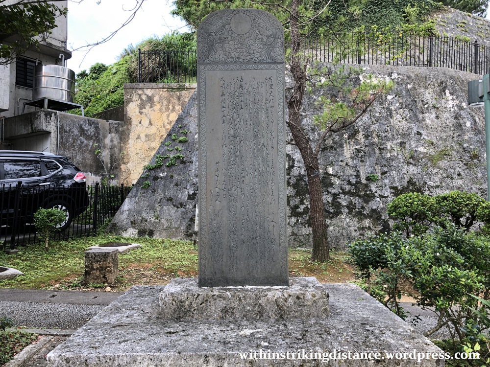 Along the way, we passed a reproduction of the Kokuō Shōtoku-hi (国王頌徳碑), a commemorative stone tablet set up in 1543 during the reign of King Shō Sei. The original was destroyed during the Battle of Okinawa in 1945, and this replica – based on a surviving fragment and similar monuments from the same period – was set up in its place (though not on the same spot).