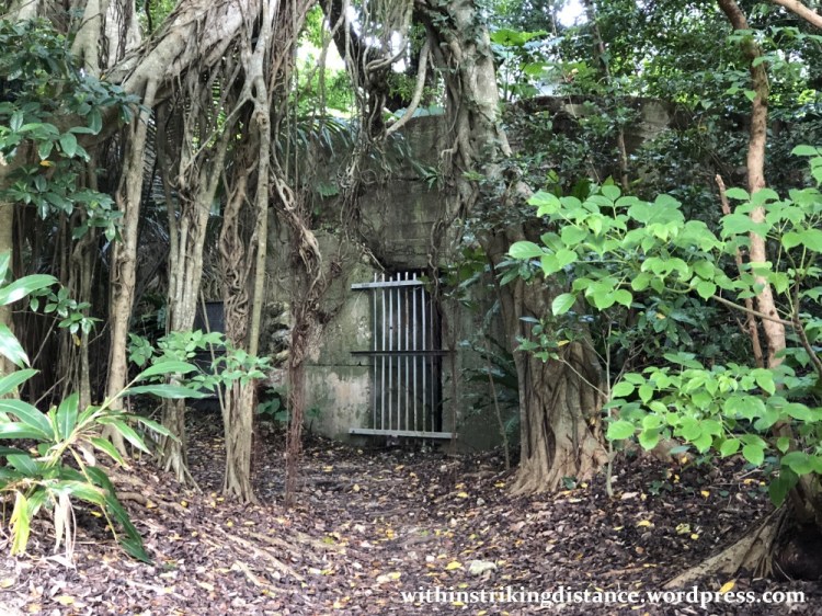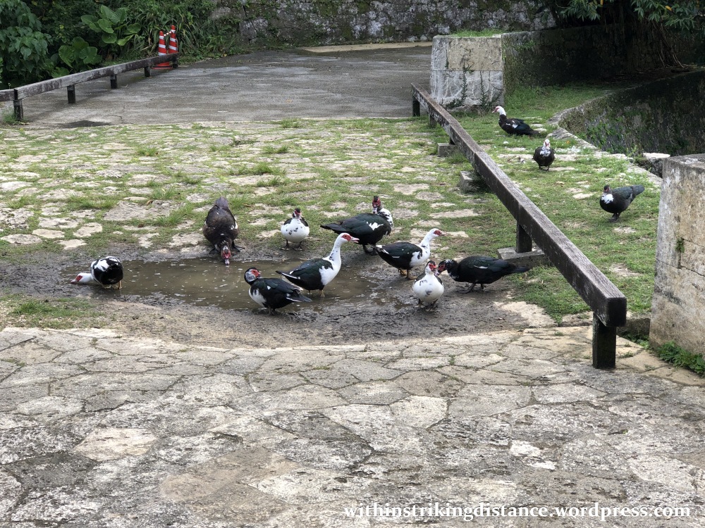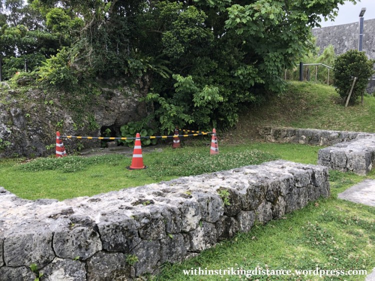 We did run into a spot of trouble along the way…though it had nothing to do with snakes. Contrary to the morning weather forecast, an unexpected downpour began to spread across the castle grounds, and we hastened towards the visitors’ centre in the west (near Shureimon) seeking refuge from the rain. We resumed our exploration after a brief snack and shopping break, following a flight of stone steps that branched off the main path to the northeast (between the Sonohyan-utaki and Kankaimon).