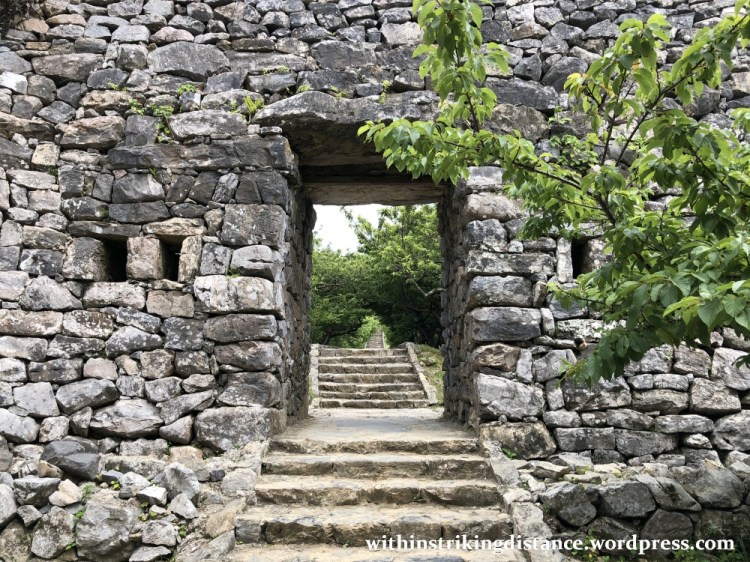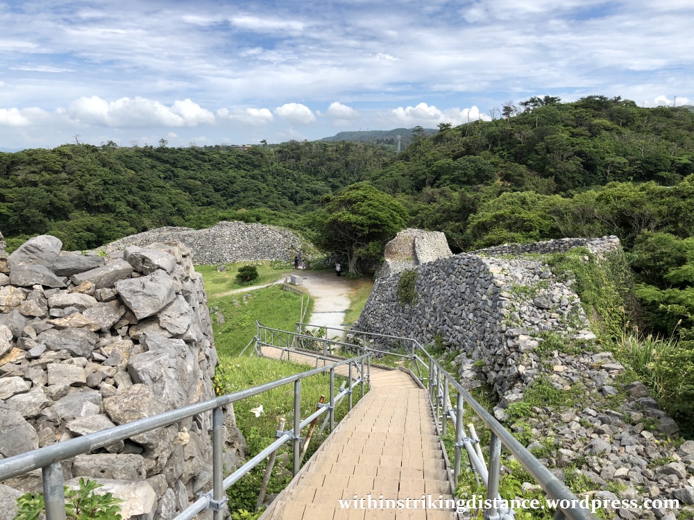 This portal leads down to the Shijima-jōkaku, or Shigema-jōkaku (志慶真門郭), where the houses of the Lord of Sanhoku’s closest retainers are believed to have stood. There isn’t much left down there – just a few markers outlining the foundations of several long-lost buildings – but the views of the castle walls that can be enjoyed on the walk down (and back up) are not to be missed.