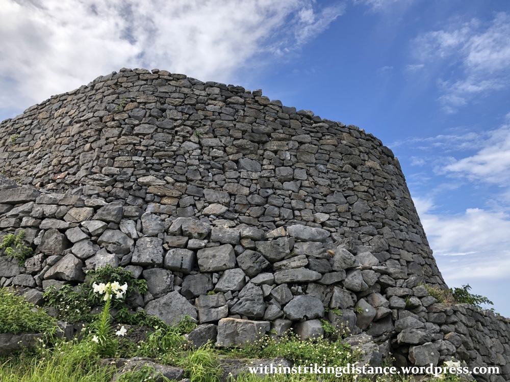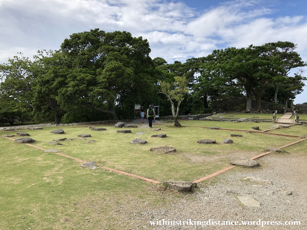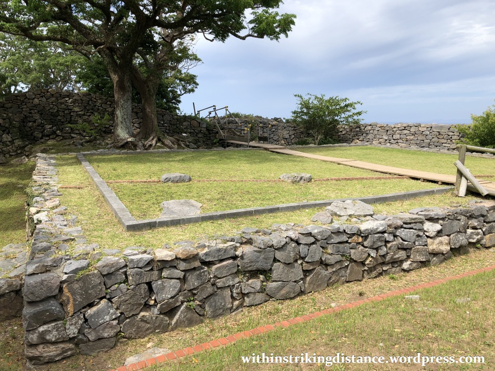 From here, we moved south into Nakijin Castle’s innermost enclosure: the Shukaku (主郭), also referred to as the Honmaru (本丸), the latter being the conventional Japanese term for the core section of a typical castle. This area has some of the best-preserved building foundations on the grounds, with the restored retaining walls and column bases hinting at the form and size of the wooden structures that once stood here.