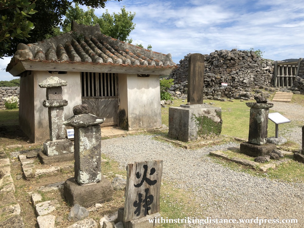 The Shukaku has a sacred site of its own: a shrine dedicated to a fire deity that was worshipped here during the days when the Hokuzan Kanshu ruled the area. This small building is still in use today, such as during the Shiro-uimi rites held on the 10th day of the eighth lunar month.