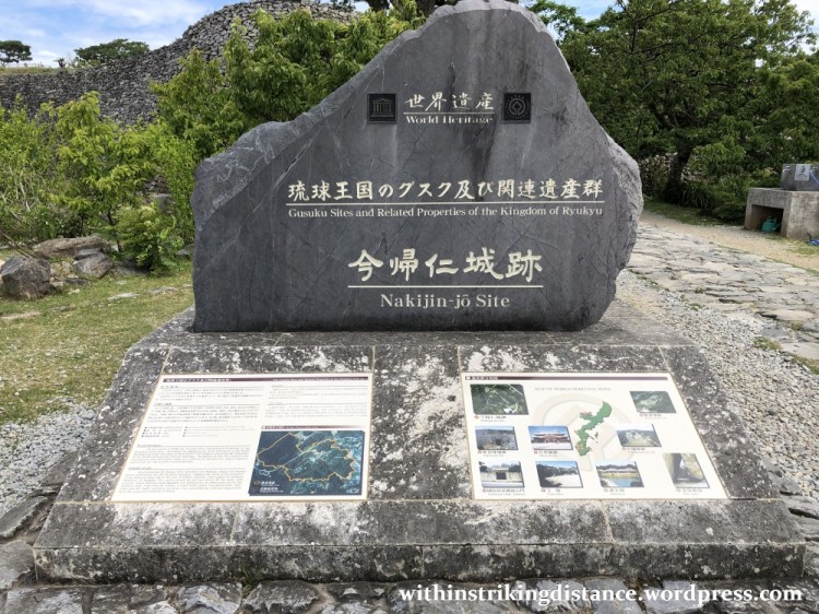 In 2000, Nakijin Castle was inscribed on the UNESCO World Heritage List under the group heading “Gusuku Sites and Related Properties of the Kingdom of Ryūkyū“, together with eight other Okinawan landmarks including Shuri Castle, the Tamaudun mausoleum, and the Shikina-en royal garden.