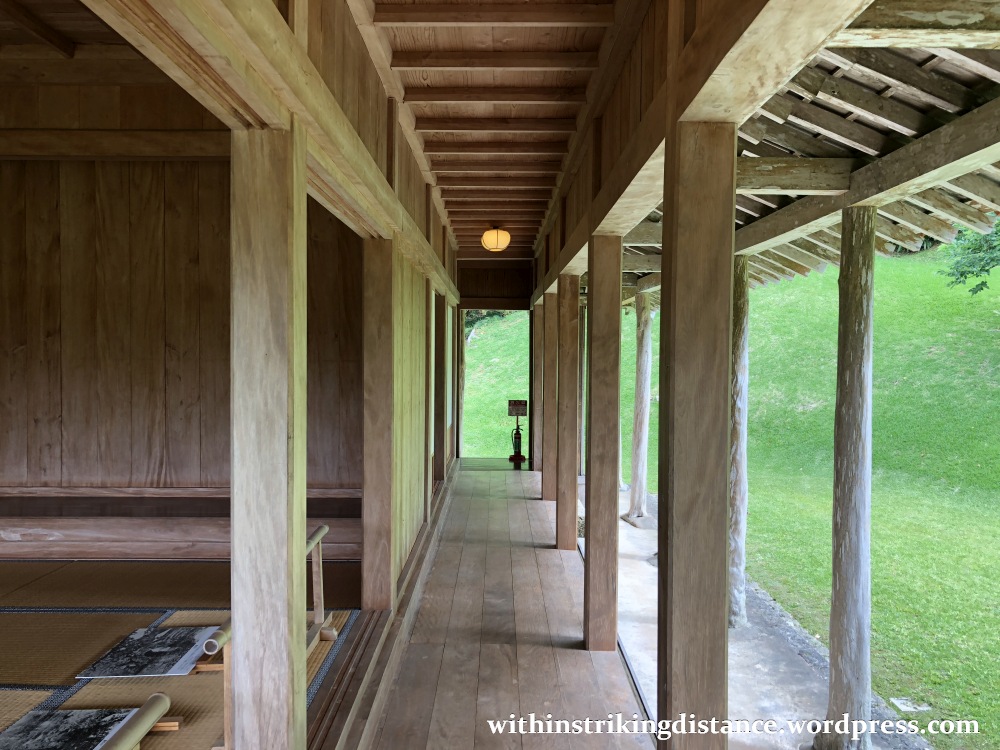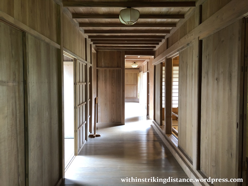 At one point, we walked past the rear section of the Udun and through a space in the surrounding stone wall – perhaps the 18th-century equivalent of a service entrance. Next to the palace building, we saw a wooden structure known as the Kago-ya. This once served as a sort of garage for kago, the palanquins in which aristocrats were transported, as well as a rest area for the bearers who carried the heavy kago on their shoulders.