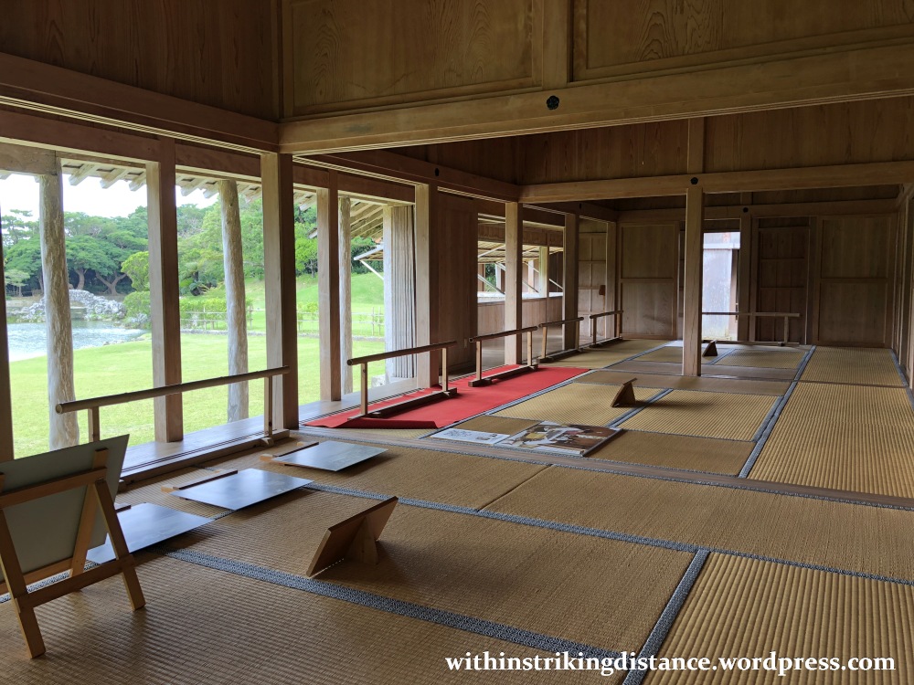 We soon reached a grassy clearing on the central pond’s northwestern shore – the site of Shikina-en’s sprawling Udun. This elegant wooden mansion was a secondary palace of the Ryūkyūan royal family, a place where the king and his courtiers might relax and entertain important guests. Whilst clearly showing a large degree of Japanese influence (particularly in its interiors), the red-roofed Udun nonetheless retains a distinctive Ryūkyūan character.