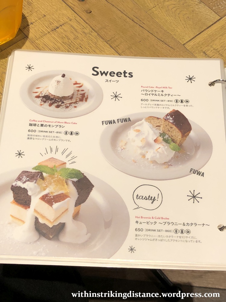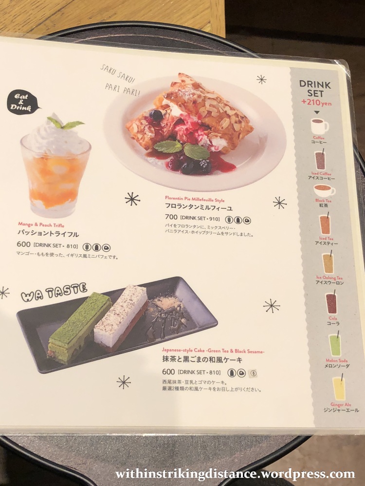 There was a decent selection of beverages (hot and cold) and food (sweet and savoury) on offer, but I’ll just post the specific menu pages we picked out our choices from.