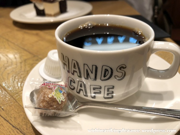 My sister and I had just enjoyed a hearty lunch at Wafū-tei, in the Naha Main Place shopping centre – click here to read my post about that experience. Needless to say, we were hankering for a bit of sweetness to cap off the meal … and I, as a coffee addict, was just about due for my second cup of the day. We already knew that there was a café within the same area of the mall, having passed Hands Cafe after our brief shopping excursion to the local Tōkyū Hands branch (right next door), so the choice was easily made.