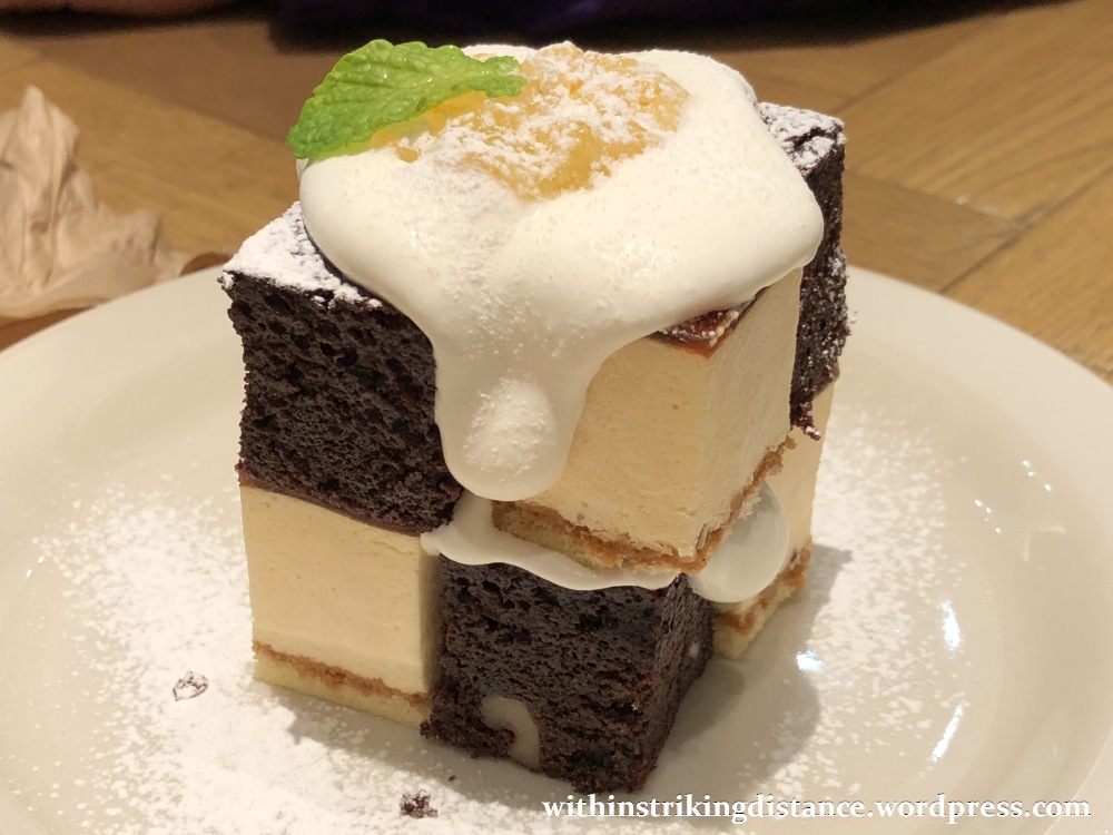 My sister’s choice: a stack of warmed brownie chunks and chilled crème brûlée cubes (キュービック~ブラウニー&カタラーナ~, 650 yen). Funnily enough, the Japanese menu entry uses “catalana” (カタラーナ) whereas the English caption has “brûlée” (which would have been written out as ブリュレ). Whilst I’m aware that crema catalana is very similar in character and composition to crème brûlée, I find the disparity in terms rather interesting … though we should probably forgo the linguistic digression and simply salivate over the picture.