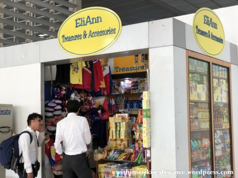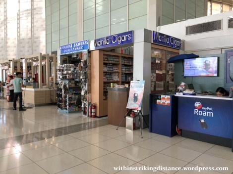There’s a counter where passengers can pick up myPAL Roam pocket WiFi routers. Next to that are two shops: one selling locally made cigars; the other stocked with a rather eclectic assortment of merchandise, including books and magazines. Then there’s a hot dog stand, and – just barely visible on the far left – a booth offering prepacked meal trays and other edibles. Not shown here is a small café with what appears to be a separate smoking room (its main sitting area is marked “No Smoking” though); you’ll find it close to the entrance of the Business Class lounge.