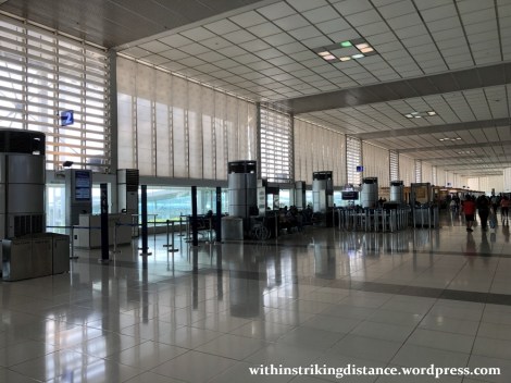 Most boarding gates are similar to the one shown in the next picture, designed for channelling passengers into aircraft via conventional aerobridges. This particular gate, #1, is the one I used for today’s flight, PR426 bound for Fukuoka.