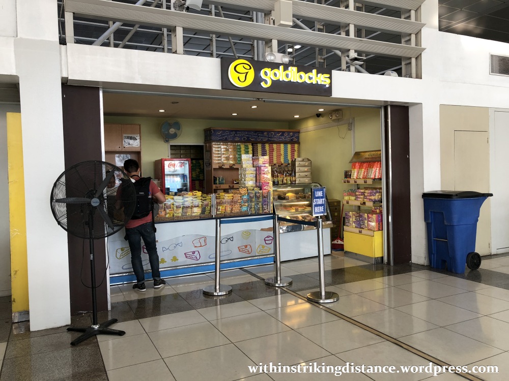 There’s a counter where passengers can pick up myPAL Roam pocket WiFi routers. Next to that are two shops: one selling locally made cigars; the other stocked with a rather eclectic assortment of merchandise, including books and magazines. Then there’s a hot dog stand, and – just barely visible on the far left – a booth offering prepacked meal trays and other edibles. Not shown here is a small café with what appears to be a separate smoking room (its main sitting area is marked “No Smoking” though); you’ll find it close to the entrance of the Business Class lounge.