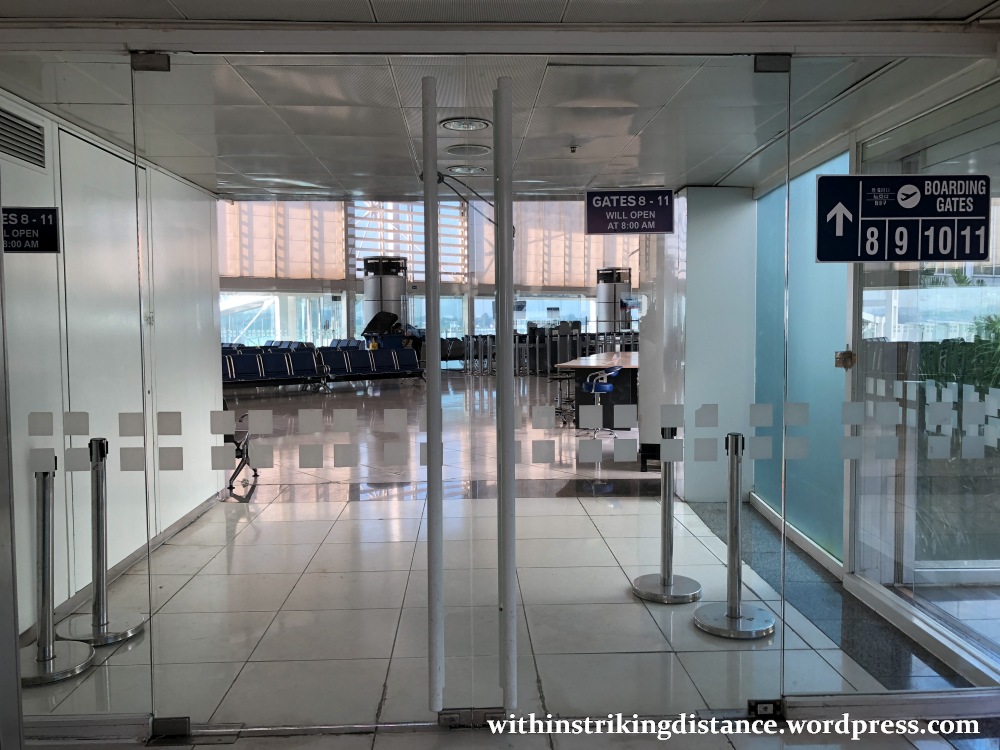 Beyond the glass-and-steel barrier at the far end of this section is T2’s crowded domestic departures zone. There are large doors built into the glass partition, which presumably means that the immediate area (covering Gates 8-11) can be opened up for the use of domestic passengers if more space is required. At those times, one assumes that the door near the entrance to the Mabuhay Lounge would be closed and locked to keep the domestic and international sides securely segregated.