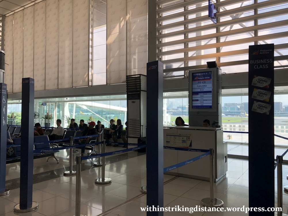 Most boarding gates are similar to the one shown in the next picture, designed for channelling passengers into aircraft via conventional aerobridges. This particular gate, #1, is the one I used for today’s flight, PR426 bound for Fukuoka.