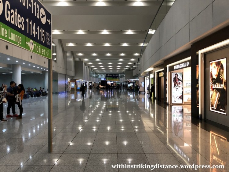 The central zone after immigration (taken in May 2018). A few additional shops have opened since then, so there’s been some improvement in terms of the available options. That said, the awful lighting and dull decorative scheme remain woefully unchanged.