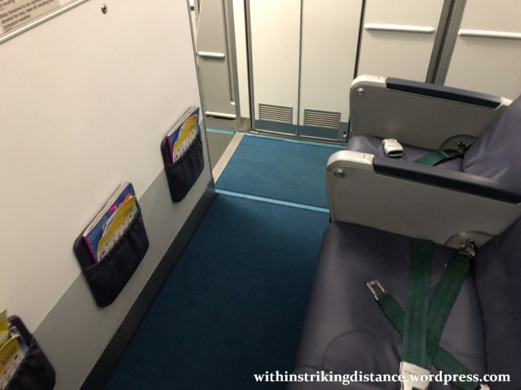 Although I only paid a “Standard” fee for 7A, it gave me some of the advantages one might expect from a Business Class seat. For one thing, I was close to both the forward and second doors, which are the ones normally used for boarding and disembarkation. This meant that I could expect a relatively short walk to my seat when getting on, and I’d be amongst the first to deplane after landing.