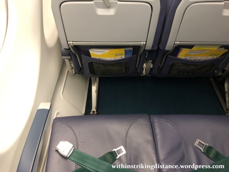 Designating seats in the back of the plane as “Standard Plus” might seem like an odd move at first, but it makes sense after one consults the A330 deck plan on 5J’s official website. Note how the usual sets of 3 seats along the windows become pairs near the end, where the fuselage narrows as one approaches the tail. Although the seats themselves are presumably no different from the rest (physically speaking), the reduction in numbers makes this area a bit roomier along the aisles.