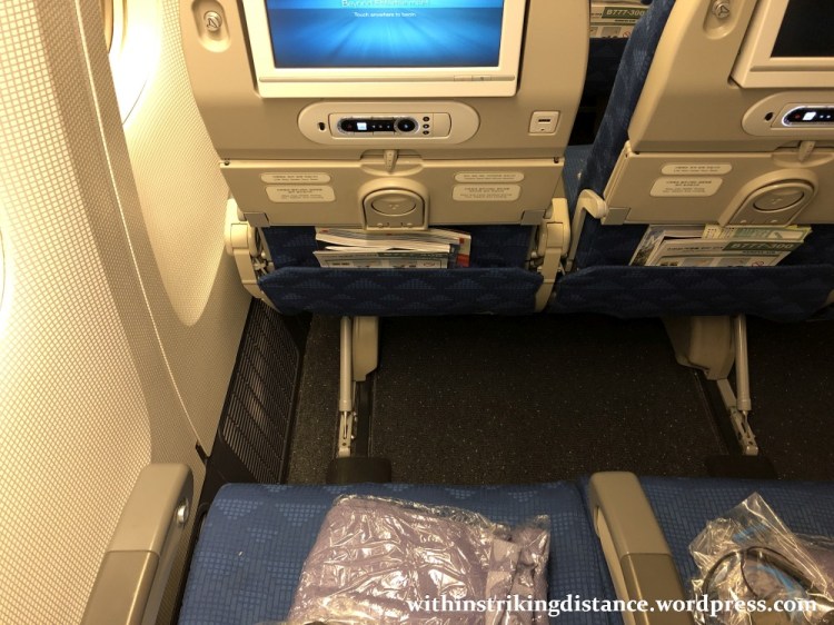 A typical Economy seat on HL7573 has 33 inches of pitch and 18.1 inches of width, with a promised recline of up to 118 degrees (though I didn’t push mine back that far). Quite comfortable in terms of space, especially down in the leg area which exceeds that offered by three of the other airlines I’ve taken on this route.