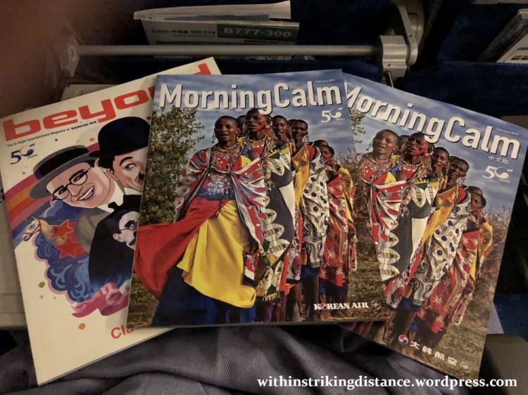 And finally, we come to the leisure component of this haul. An entertainment magazine (with details of what’s available on the IFE system), a bilingual Korean-English edition of KE’s in-house magazine Morning Calm, and a Chinese translation of the same (though this seemed to include only selected content from the full version).