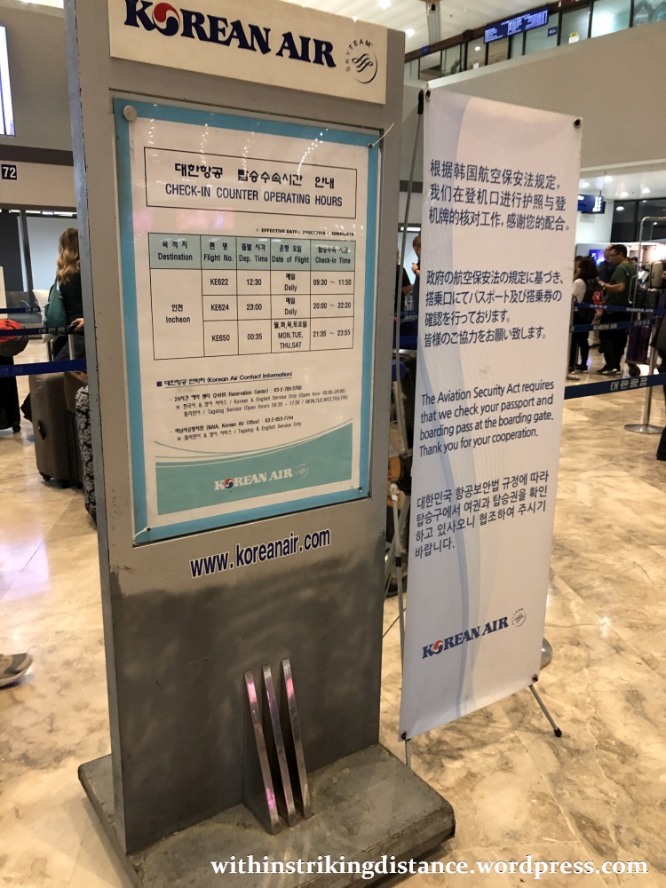 Our assigned plane docked at Gate 5 after arriving as KE 623 (ICN-MNL). Side note: the members of K-pop group BLACKPINK were on that flight, and I caught a glimpse of them being ushered by security personnel from the boarding bridge along the arrivals corridor (amidst a flurry of camera flashes). At first, I had no idea who these celebrities were – the K-pop genre is of fairly limited interest to me – and I only learned the details after the fact. Indeed, I’d originally thought that the uniformed officers waiting near the gate were preparing to escort a deported criminal off the plane, haha.