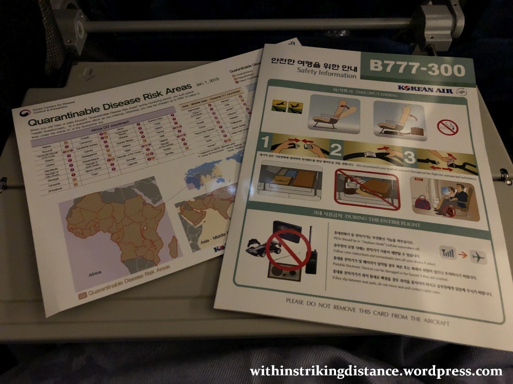 Arrival cards, customs forms, and (not shown here) health questionnaires were distributed during the flight. Since ICN wasn’t my final destination, I ended up not completing the paperwork until just before my connection on KE 1401.