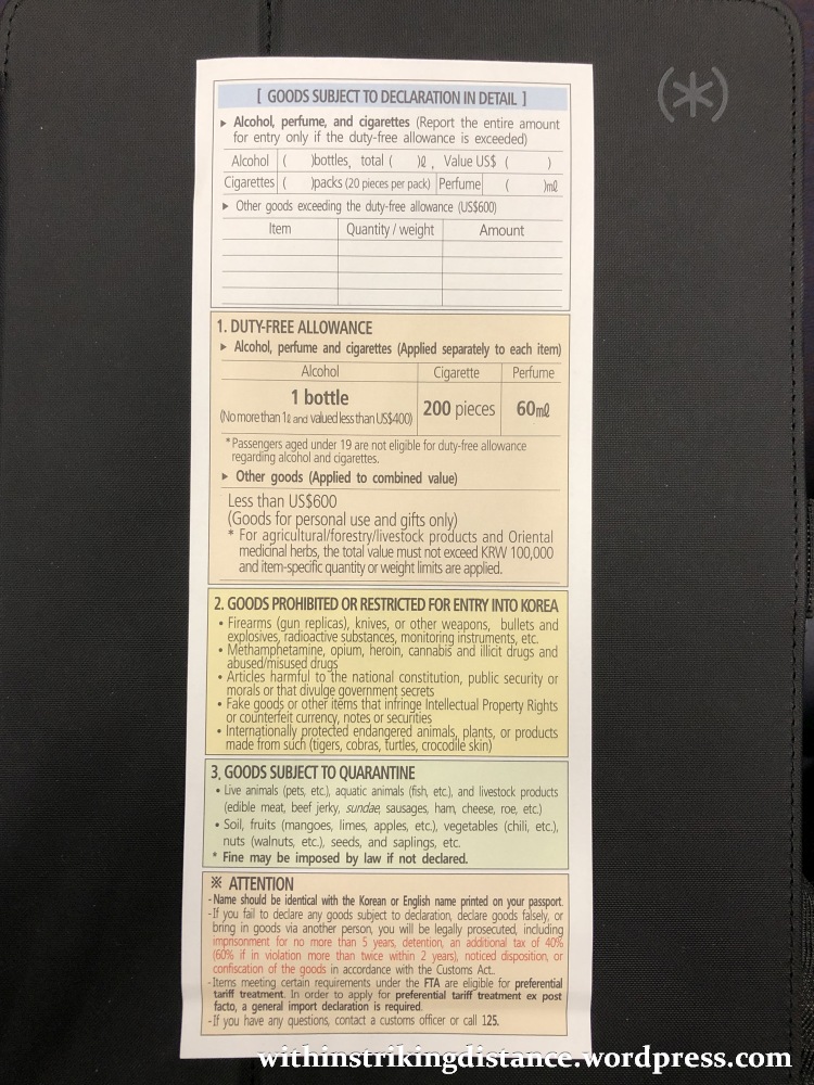 For reference, here’s the blank paperwork I received during the previous leg, KE 624.