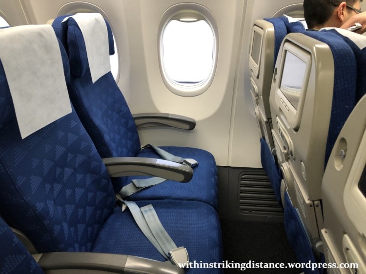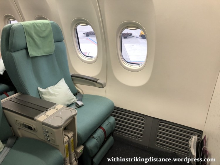 I was seated in 50F, very nearly at the end of the passenger cabin. My preferred place would have been above or forward of the wings; better for stability and an advantage when disembarking. Alas, the flight was nearly sold out by the time I booked (no surprise as it’s the Seollal weekend), and most of the remaining seats were clustered near the tail.