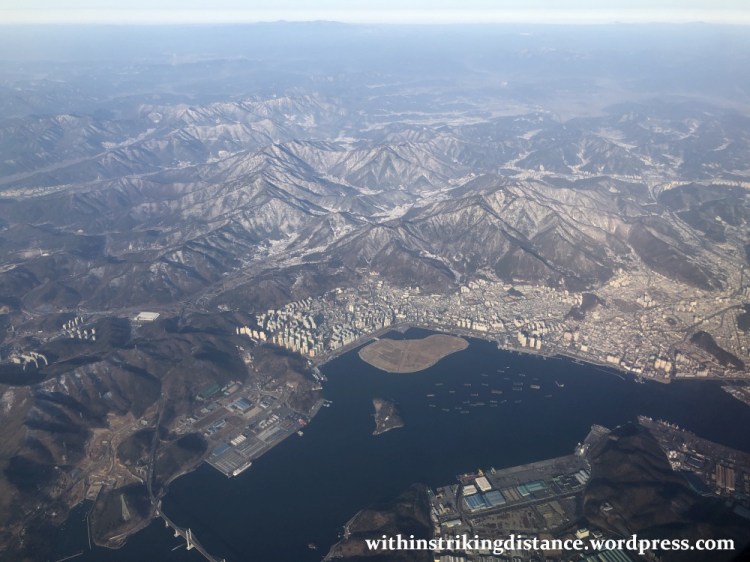 I stopped taking pictures at some point after this, the cabin crew having advised over the PA system that photographing PUS from the air was not allowed due to security reasons. (The civilian facilities of PUS are adjacent to Gimhae Air Base of the ROK Air Force, and one of the airport’s two runways is reserved for military use, so I can understand the restriction.)