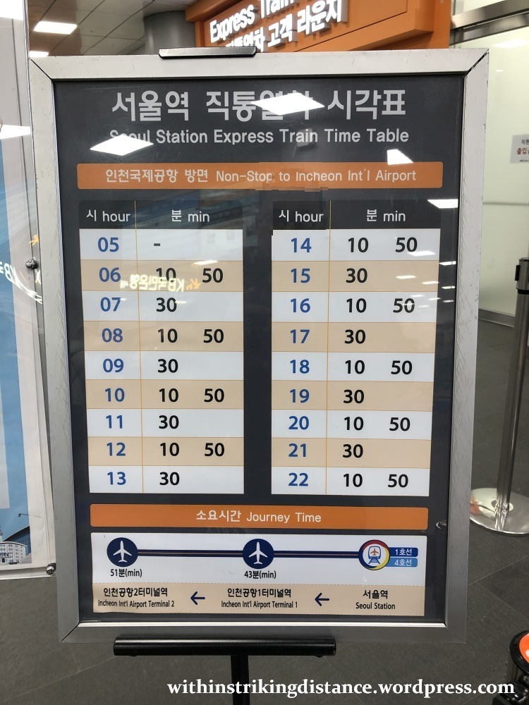 Here’s the posted timetable from Seoul Station to ICN as of 06 February 2019, the day on which I most recently used the CAT.
