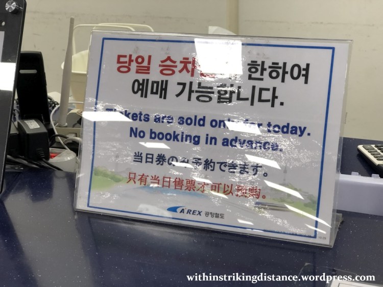 And one other thing: don’t forget to reclaim your KRW 500 deposit for the A’REX touch card by returning it at a ticket refund machine. There will be at least one standing close to the turnstiles after you exit.
