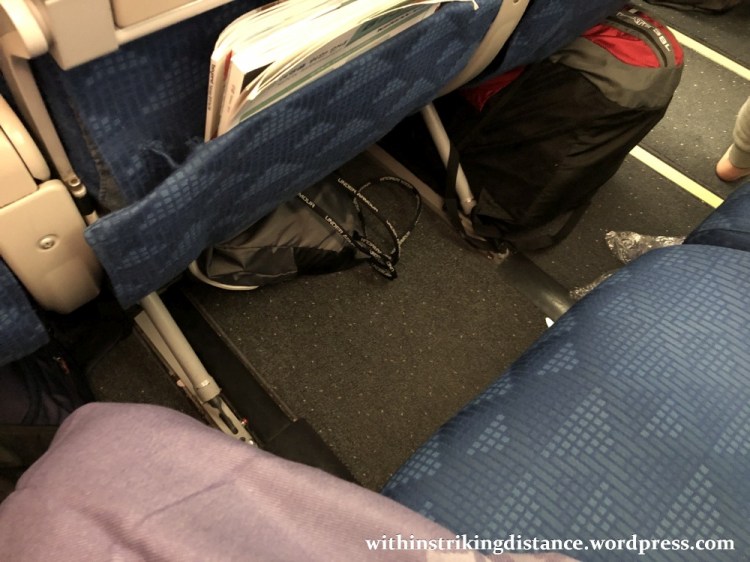 Now we come to one of the regular rows. Decent leg space, and a promised recline of up to 113 degrees (though I didn’t push mine back that far).