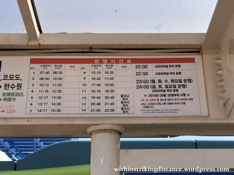 Here’s the timetable (departures from Singyeongju Station) and route summary for 700. Both images were taken on 02 February 2019; note that the details are subject to change without notice.