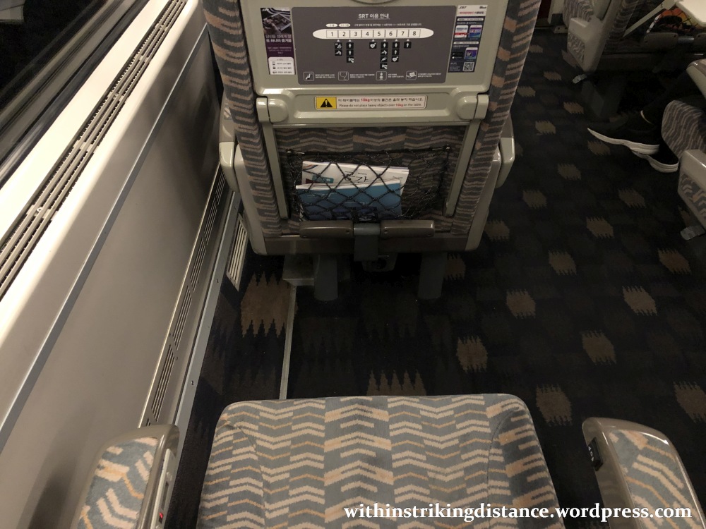 Standard Class compartments on KTX and SRT trains have four seats in each row. Here’s what the arrangement looks like in an SRT carriage. (Click here and scroll down to the lower part for images of Standard Class in a second-generation KTX train; click here to see the same class in a first-generation KTX train.)